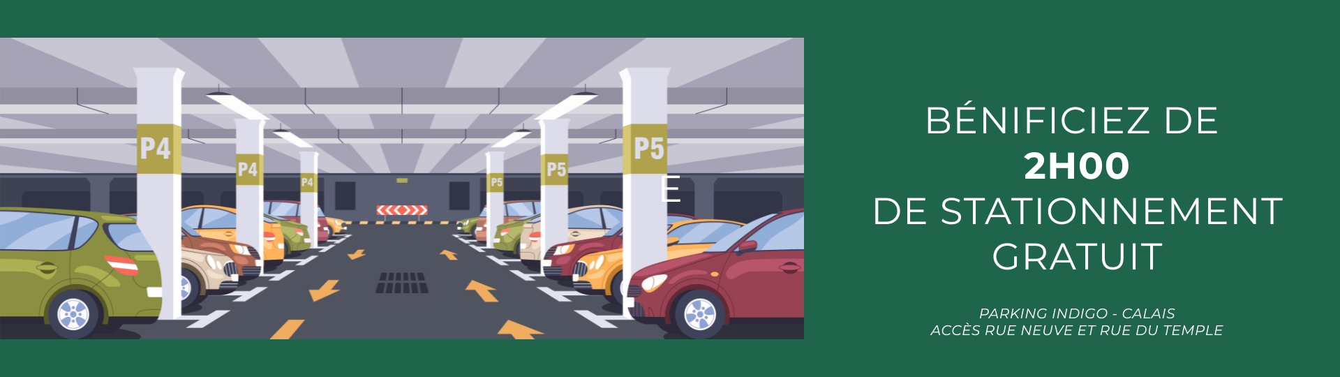 Le Centre de commerces et de services Calais Cœur de Vie est accessible depuis le parking centre-ville Indigo par :